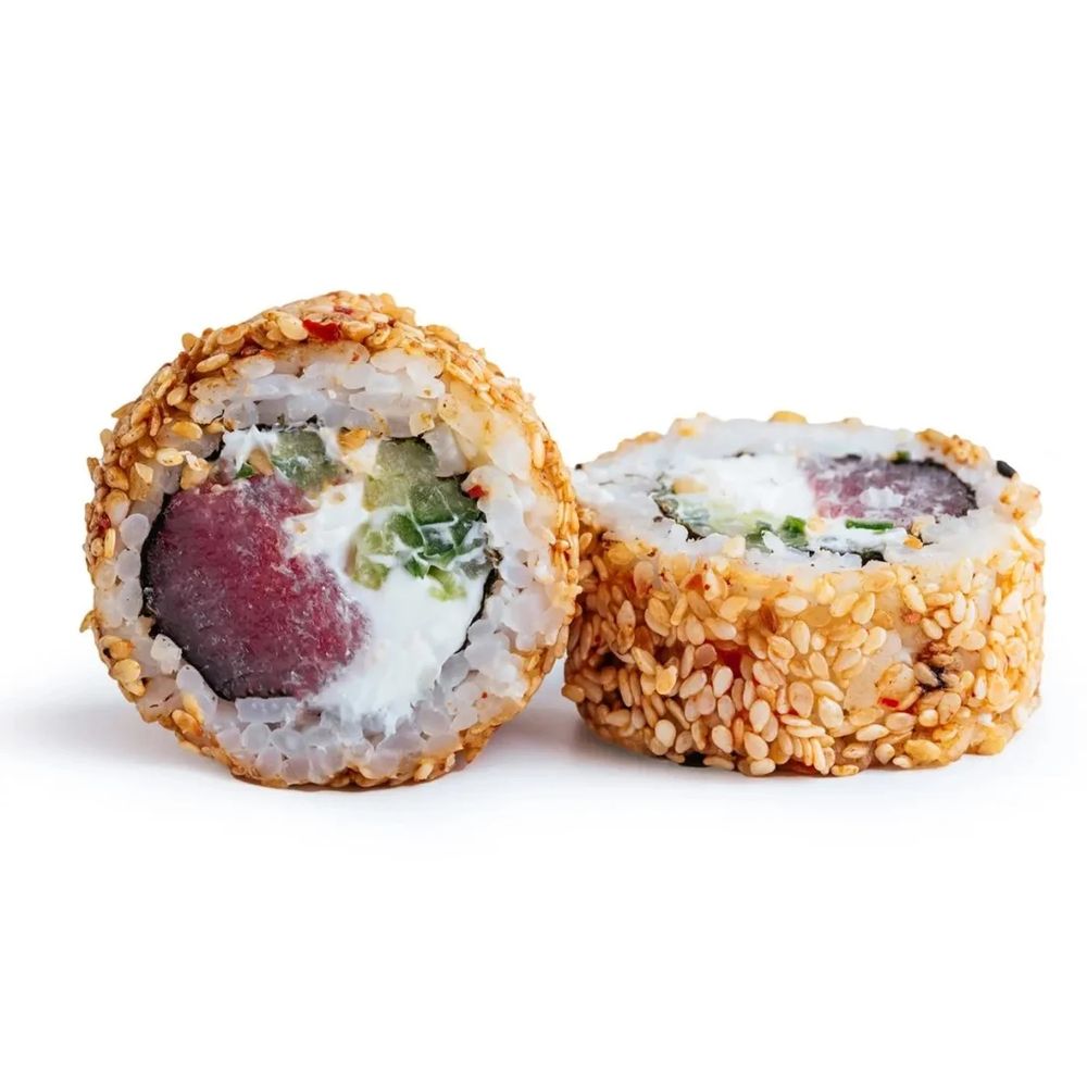 Рис, нори, тунец, кунжут Кимчи, сливочный сыр, огурец.