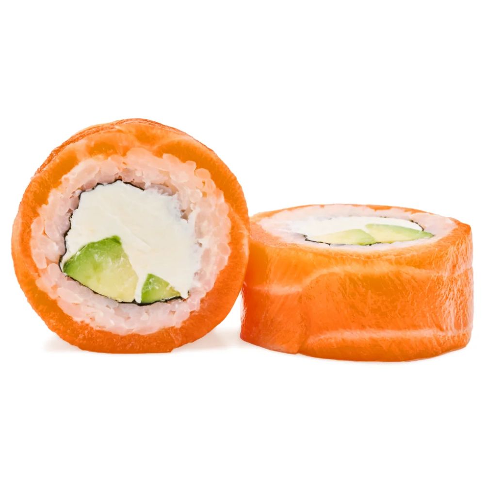 Рис, нори, лосось, сливочный сыр, авокадо.