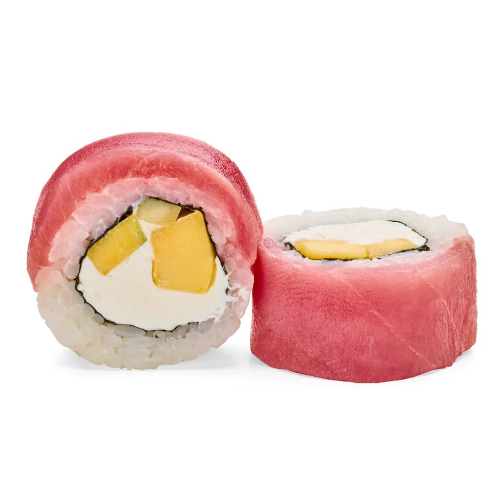 Рис, нори, тунец, сливочный сыр, манго, соус Манго.