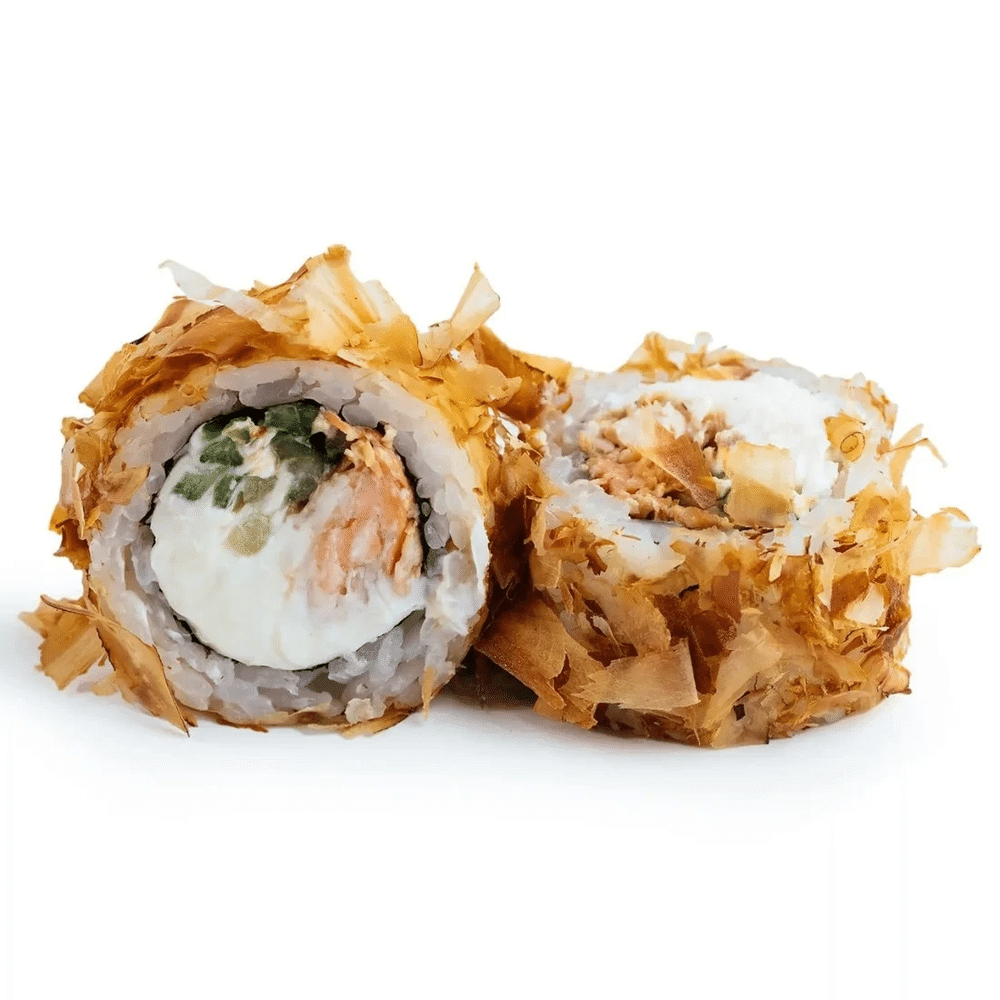 Рис, нори, сливочный сыр, лосось терияки, огурец, стружка Тунца