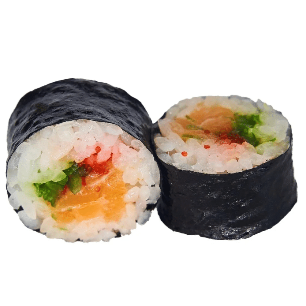 Рис, нори, лосось, чука, икра Масаго.