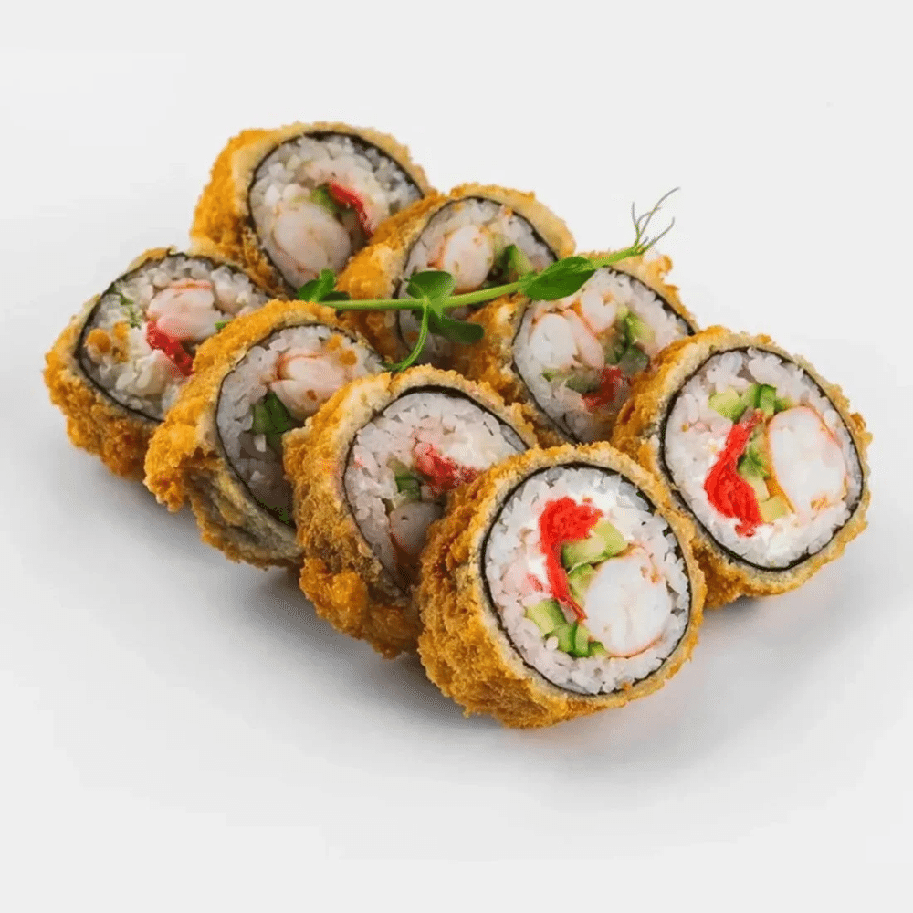 Рис, нори, темпурная смесь, креветка, сливочный сыр, огурец, соус Унаги.