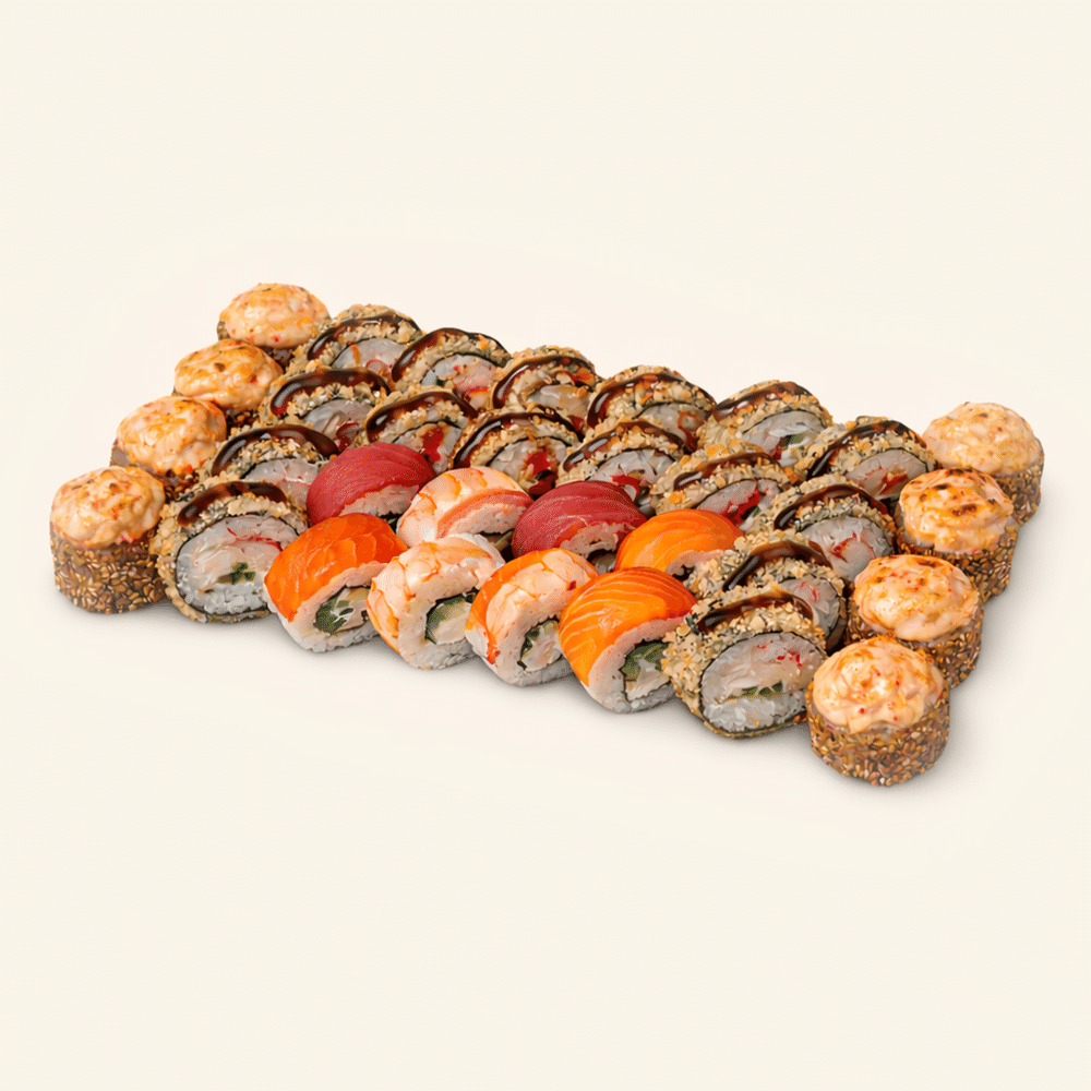 * Обратите внимание: при доставке запеченные и темпурные роллы могут быть не такими горячими, как при подаче в ресторане. Это не влияет на вкус, качество и свежесть ингредиентов внутри.