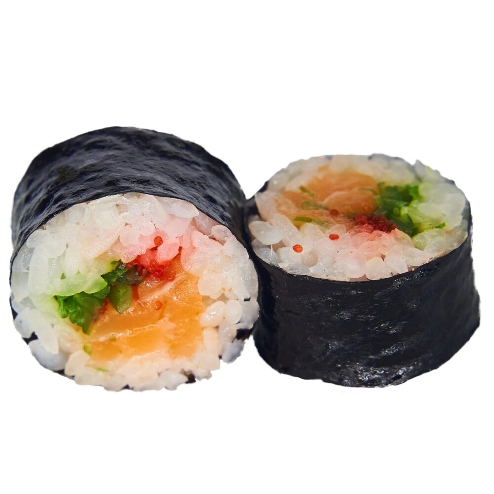 Рис, нори, лосось, чука, икра Тобико.