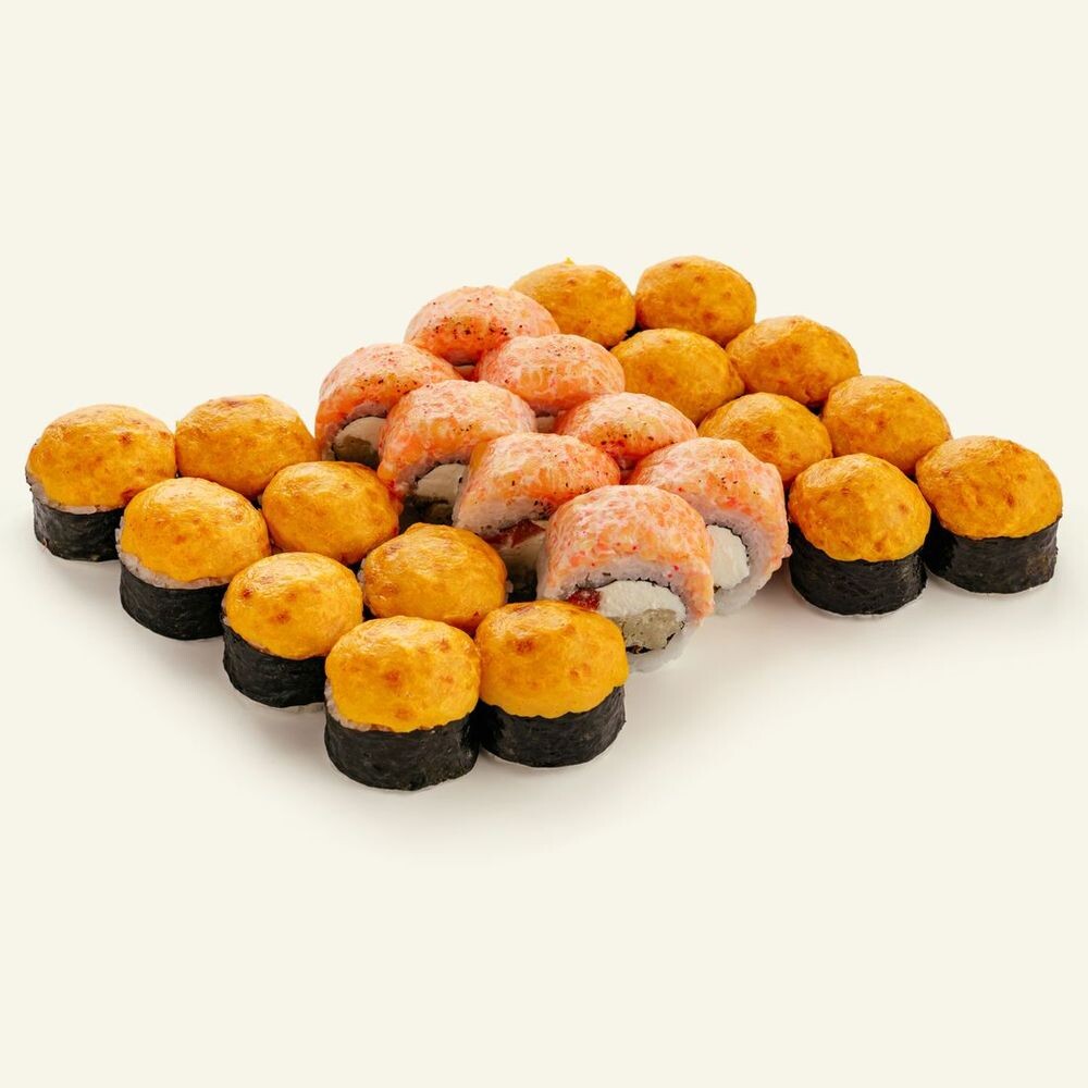 * Обратите внимание: при доставке запеченные и темпурные роллы могут быть не такими горячими, как при подаче в ресторане. Это не влияет на на вкус, качество и свежесть ингредиентов внутри.