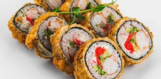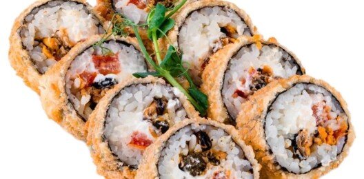 Рис, нори, темпурная смесь, сливочный сыр, снежный краб (имитация) огурец, соус Унаги.
